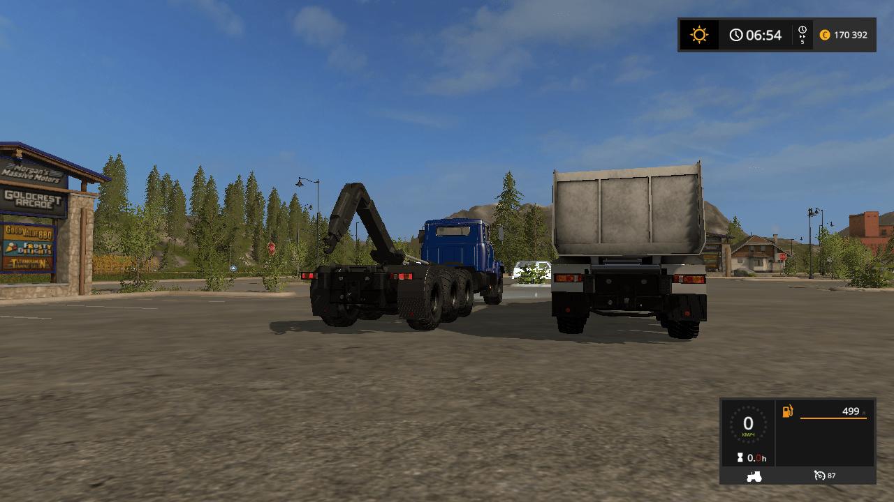The mod includes a truck with a hook gripper 7140N6 and a 7140S6 onboard dump truck (28000 liters).