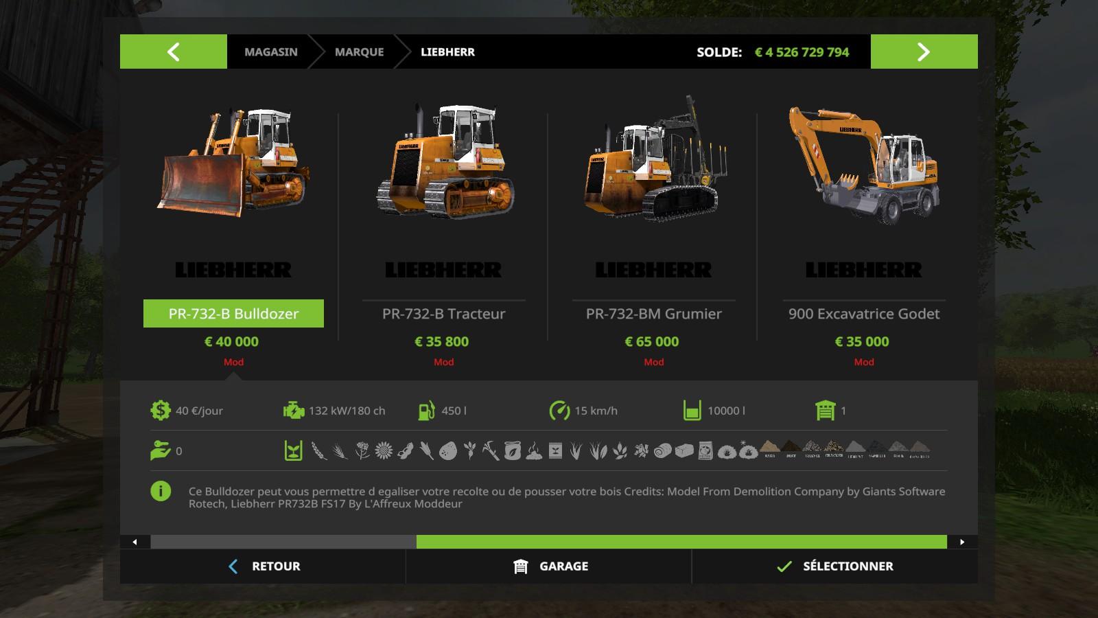 Liebherr PR732B Pack de Bulldozer, Tracteur et Grumier Forestier pour Farming Simulator 2017