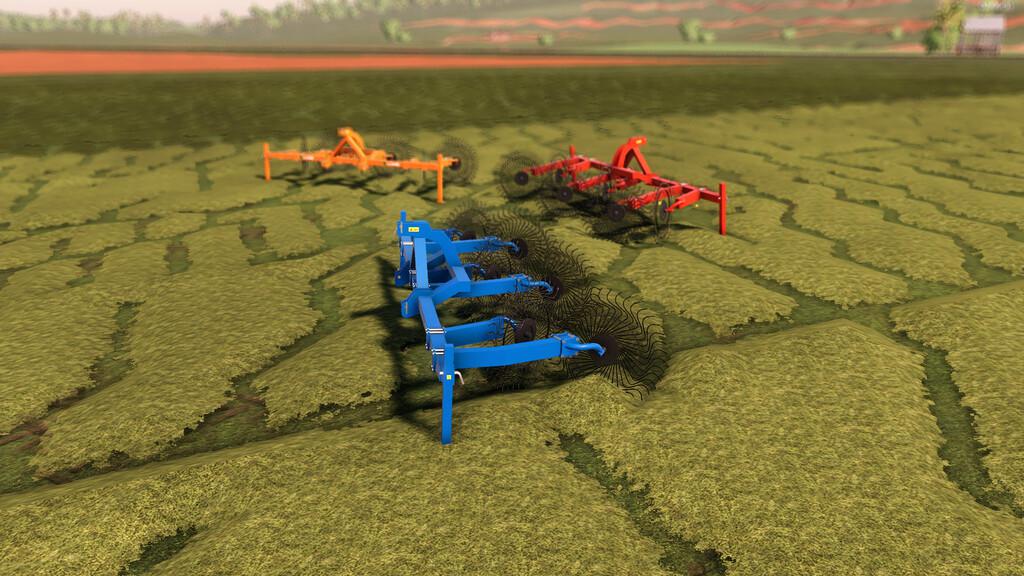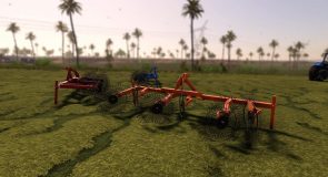 Implement used to turn grass with six rakes