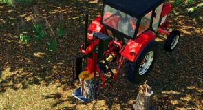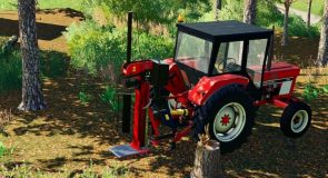 You can use this logsplitter to split trees up to 1 meter length. The logsplitter is operated from the outside, the tractor has to run. For that reason you have to deactiave the automatic engine start in the options, so the tractor stays on when you leave it. Operating this logsplitter is really easy. Just unfold and turn on the logsplitter (from inside the tractor), then put a wood piece on the logsplitter, walk to the levers and push the key that shows up in the help menu! As soon as the wood is split you can release the key and the split cylinder goes back automatically.