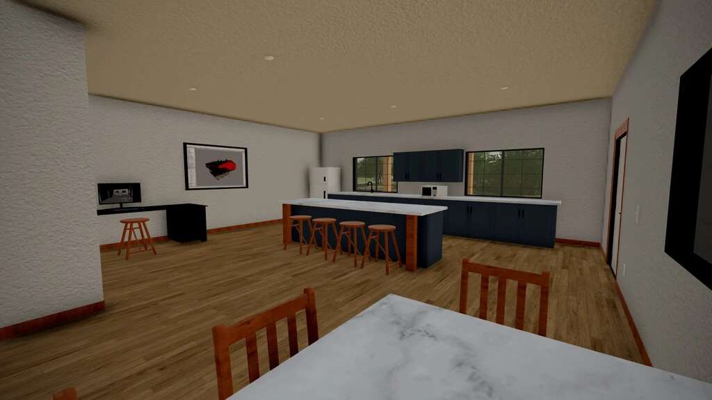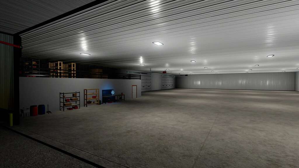 An American-styled shed to fit any of your needs. This shed includes a large area to store machinery, liquid fertilizer or herbicide, and pallets. In addition, this sheds offers the possibility for role-play and realism by introducing a lounge, on the inside of the building, along with moveable items throughout the shed.