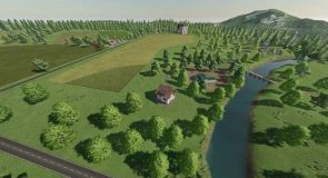 This is a fictional map. There are medium-large fields. A large forest area for forestry work.