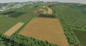 This is a fictional map. There are medium-large fields. A large forest area for forestry work.