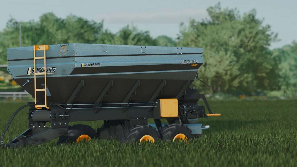 The Bandeirante Lime and Fertilizer Distributor, VIRTUOS, available in capacities of 12,500, hydraulic continuous command box with conception of assembly by bolts, which increases its useful life, distribution with width from 18 to 36 meters, among other characteristics.