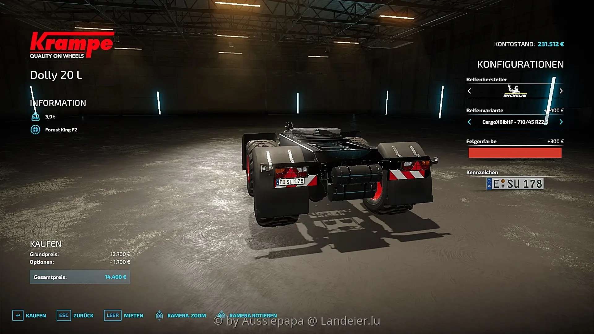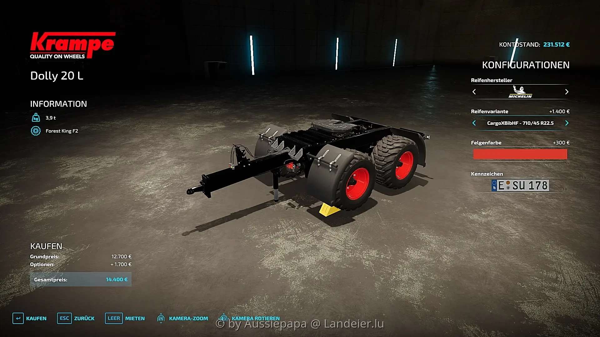 Matching Dolly 20L with rim color choice and the same tires / license plate