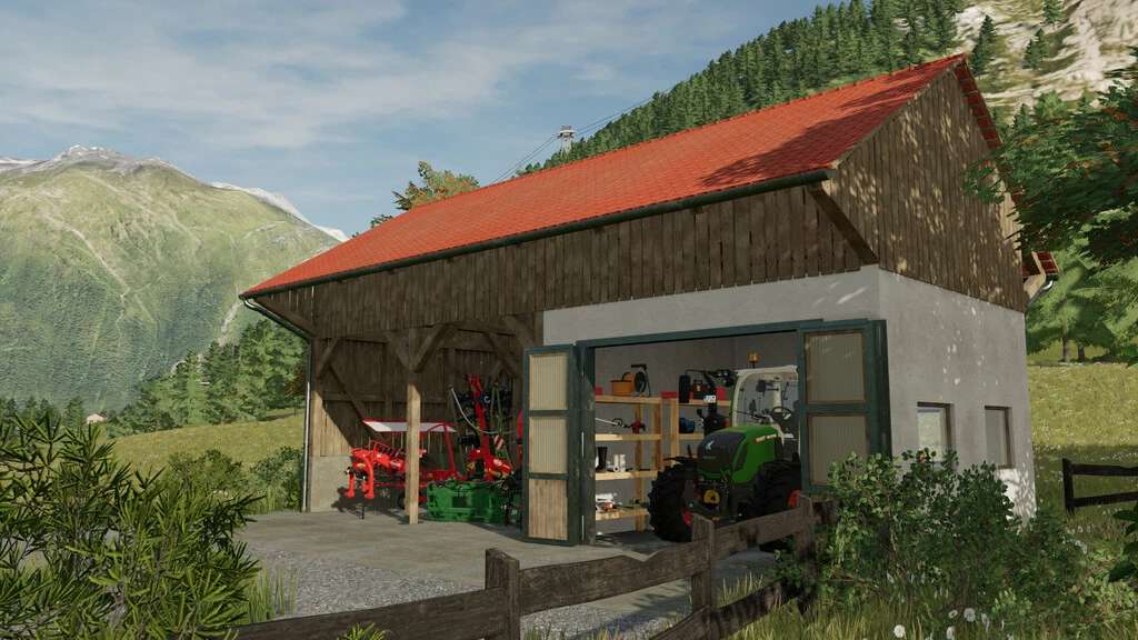This building is a small barn in southern German or Bavarian style, which also offers a workshop, as well as a hayloft above for storing HD bales.