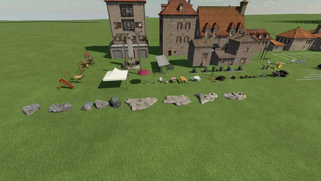 In this package you will find decorative objects from the basegame for your farm and your village. Several tools, plants and various objects are available. Beautify your card with these decorative objects from the FR, Alpine and US map!