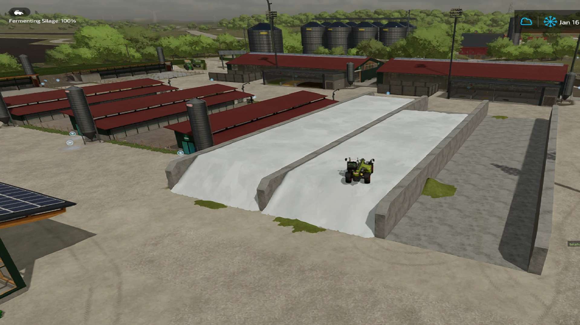 Almost everything you need for machines is set up in the huge sheds, but there are still empty spaces to give your own interpretation to my savegame.