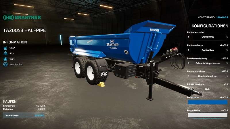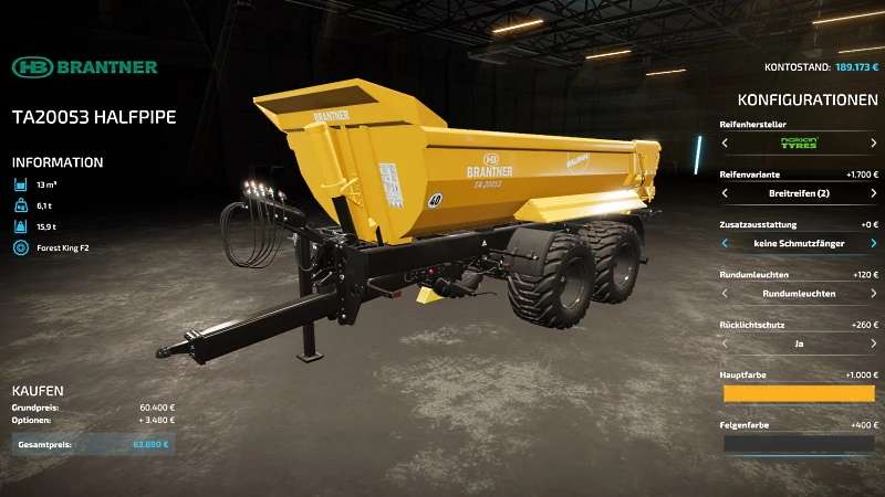 BRANTNER TA 20053 HALFPIPE heavy duty tipper trailer