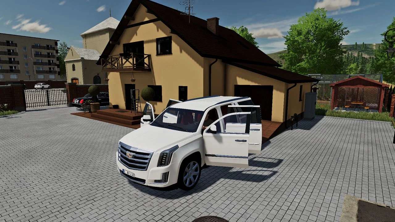 Car features : openable doors , bonnet and trunk , animated pedals, working gauges , working mirrors , working wipers, option for rim color and interior color, option for tow hitch to attach trailers , fs22 license plates , real Cadillac Escalade 2016 sound recorded by me , 2 set of tires , full dirt textures. No errors