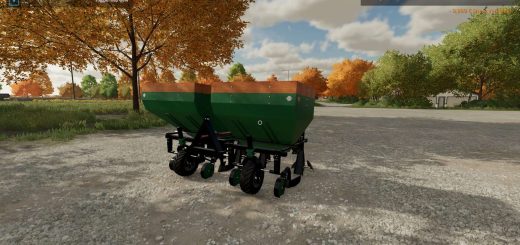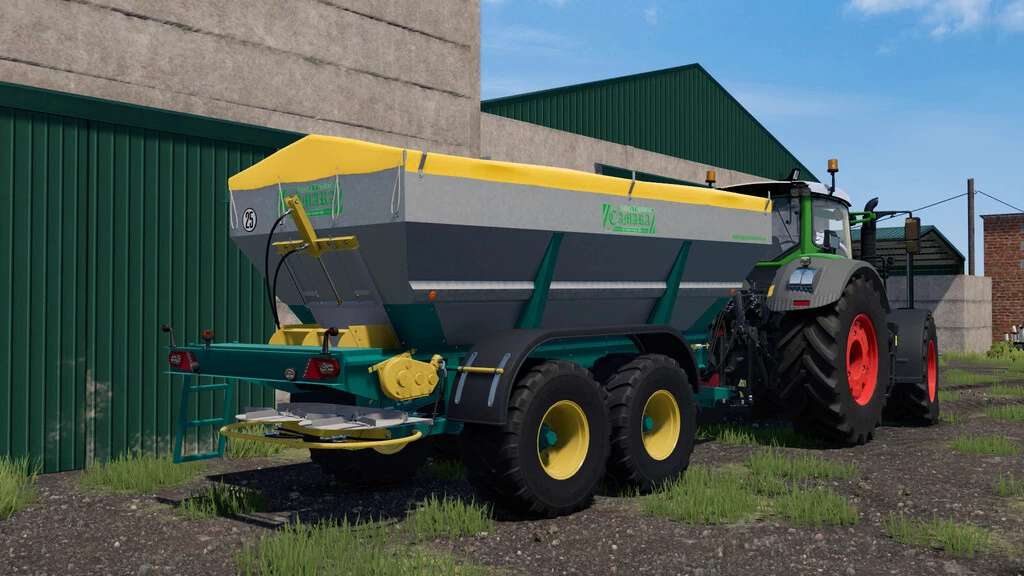 Large capacity fertilizer spreader with box made of stainless steel.
