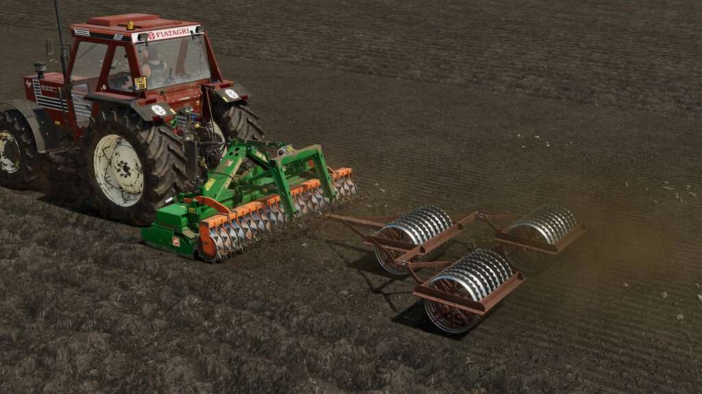 Old cambridge roller, either for use directly behind a tractor to roll sown fields, or to attach to a power harrow or cultivator for better soil compaction to prevent the ground from drying out. When attached to the hitch of a power harrow, more caution might be required if the machine is set to lift too high.