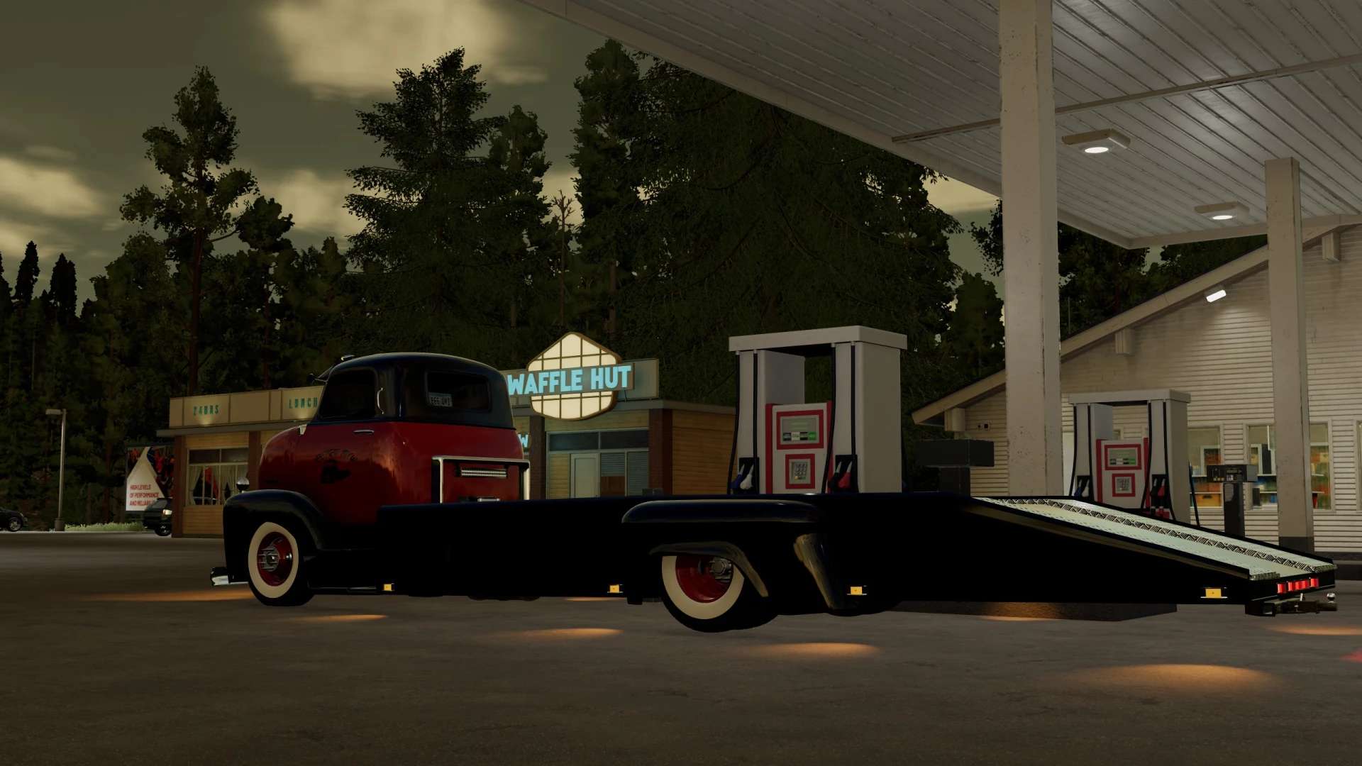 Updated Coe ramp truck with 2 tone paint, new wheels, platinum dlc log winch and animated interior. Enjoy! Controls: Air ride: front J N rear K M Worklight: numpad 5 Underglow: numpad 6 Ramps: Fold/X