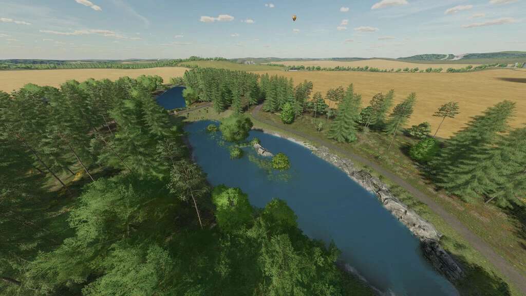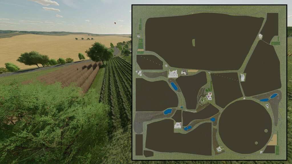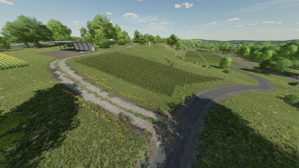 In order to make every player happy, the map has also been decorated with smaller to medium-sized fields. The map has 17 fields and nine large forest areas. There are also six ponds. Between the vivid and varied wooded areas and arable land, the cultivation of wine and olives in the farming simulator 2022 should not be missing. To harvest olives or grapes, 20 buyable plantations were created. In addition, four poplar plantations were established.
