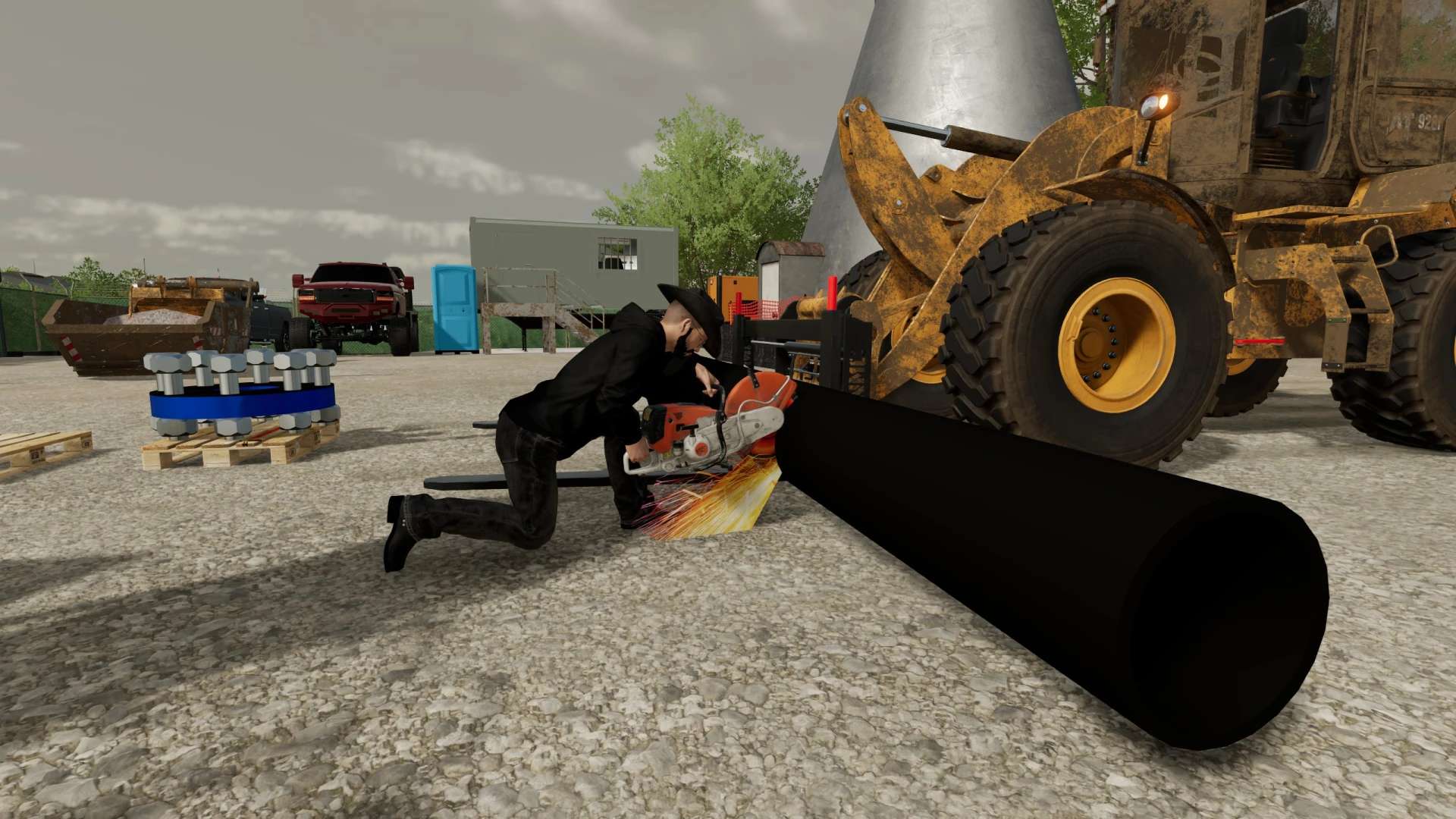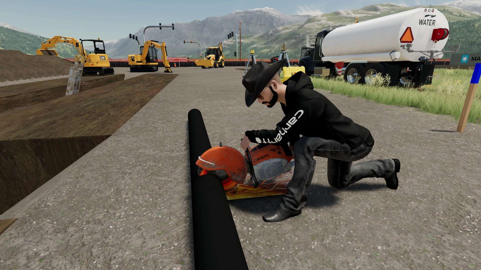 This is a pack of construction saws that I made. It includes a walk-behind concrete saw, as well as a chop saw for cutting pipes. You need to download my Caterpillar 304E2 mod as it creates the store category that these saws are in, they are found in “Equipment”. Your posture while holding the chop saw can be changed using mouse controls, and the sparks can be turned on and off with mouse controls. This mod, like most of my mods is a WIP. I add stuff as I think of them and I am constantly tweaking and updating it. As always, let me know if you have any suggestions or feedback.