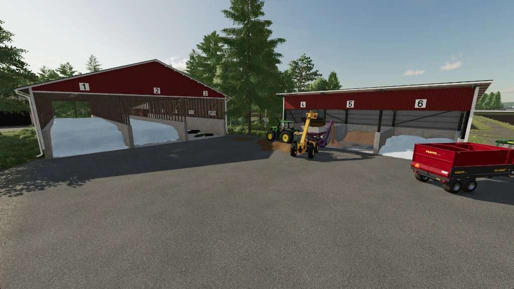 The larger building also has lights that can be controlled from the other side of the building and the possibility to build a end wall if you don’t want to use the silos as drive-throughs.