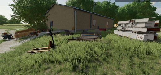 The goods acceptance times for boards, fabric and wood are at the rear roller doors from 11:00 a.m. to 4:00 p.m. Wood chips, silage and straw can be unloaded at the chute in the rear courtyard during the opening hours of the gates, from 7:00 a.m. to 8:00 p.m. There is also a granite block with illuminated lettering for decoration. Around the terrain, the ground may need to be hand painted in landscaping mode.