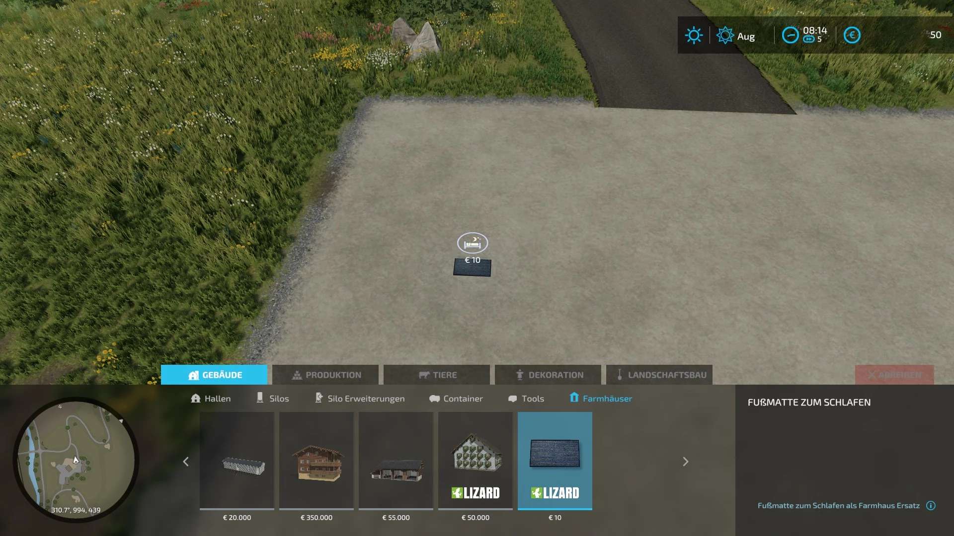 The doormat can be found in the construction menu under Buildings –> Farmhouses and can be bought and placed for €10.