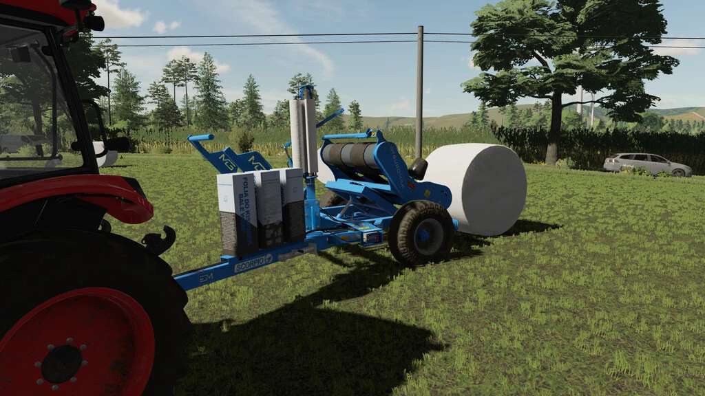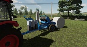 EuroMilk bale wrapper. This bale wrapper will wrap bales from 125 cm to 150 cm. The wrapper is attached to the rear of the tractor and loads the bales itself using an arm. Unloading can take place with or without a bale lifter.
