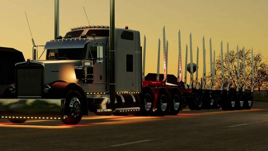 Here’s my Manac log trailer from FS19 upgraded a bit to match the lighting on my W900. Also added beacons to the rear, more light and color options.