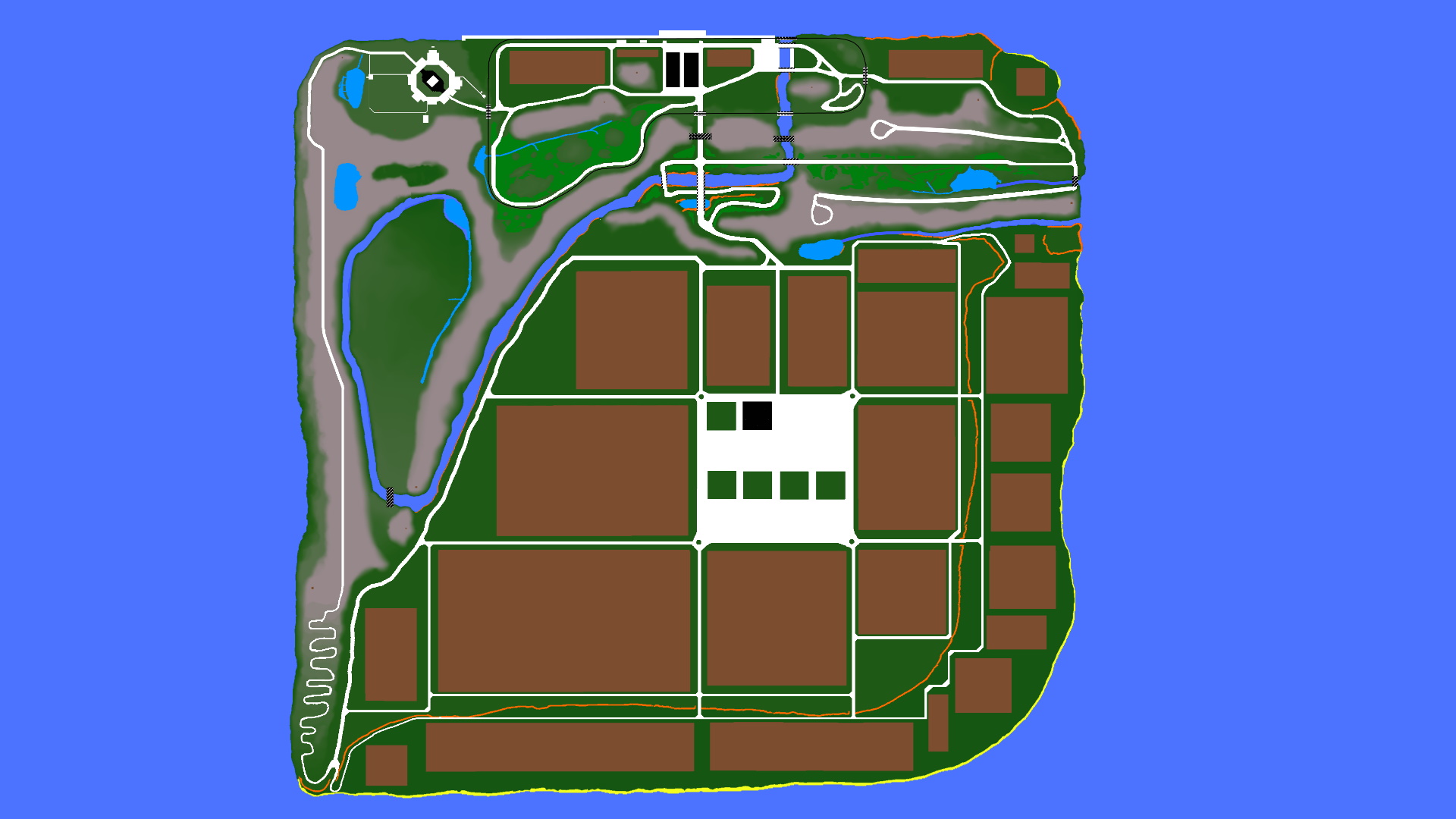 There is a trade port and small village to the north, and a large farm area in the center of the Island.
