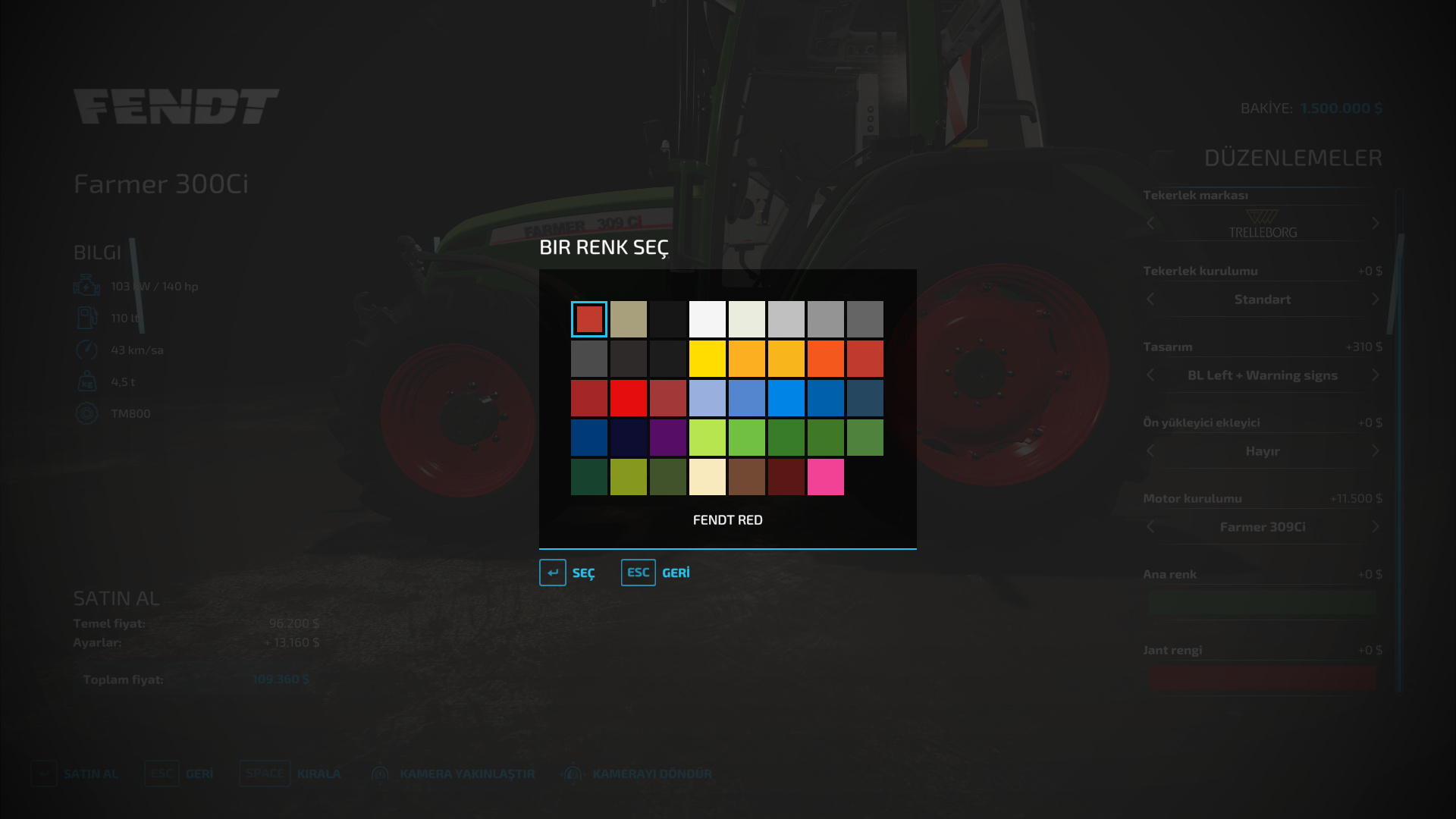 Many tractor color configuration options
