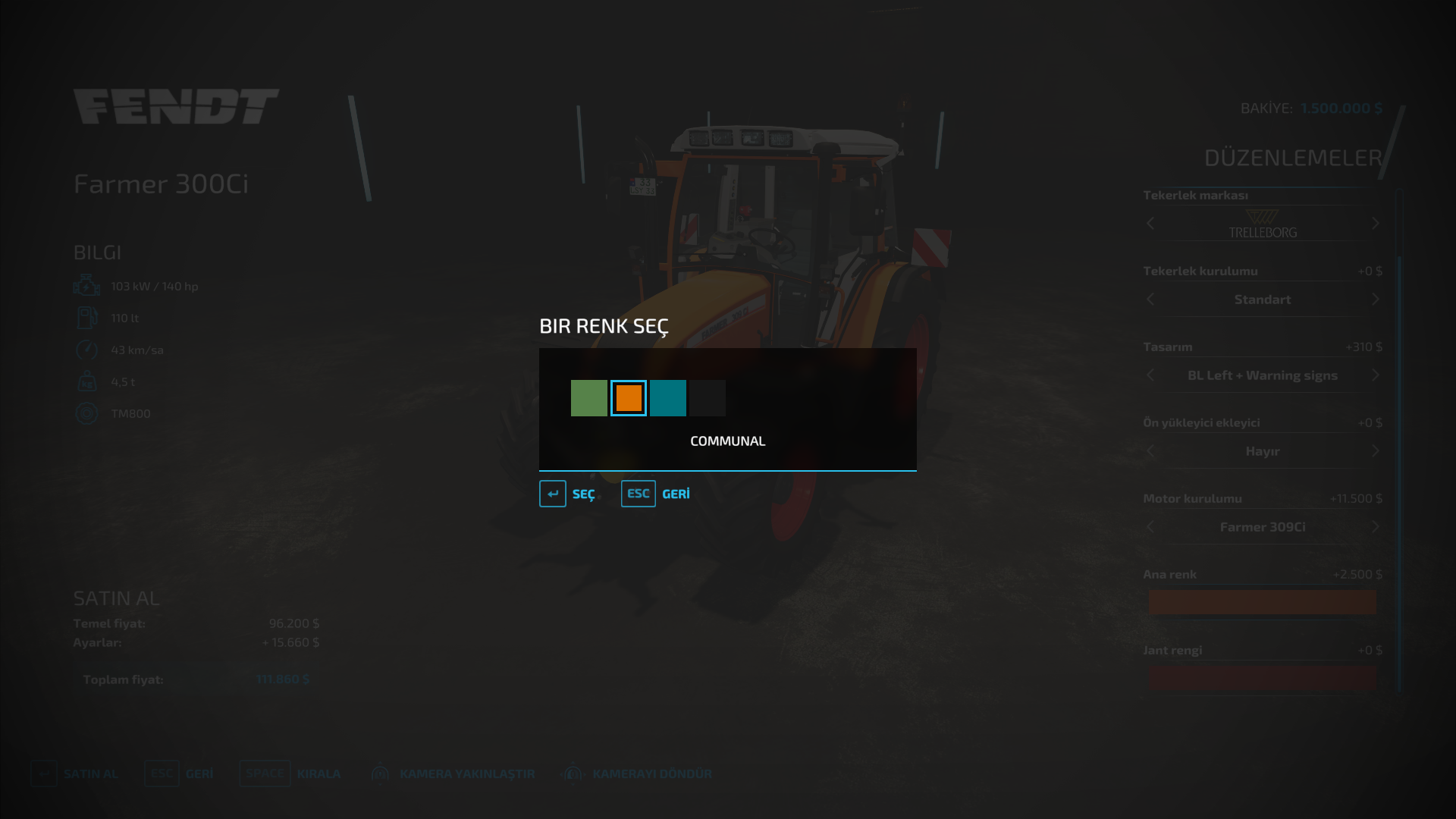 Many tractor color configuration options