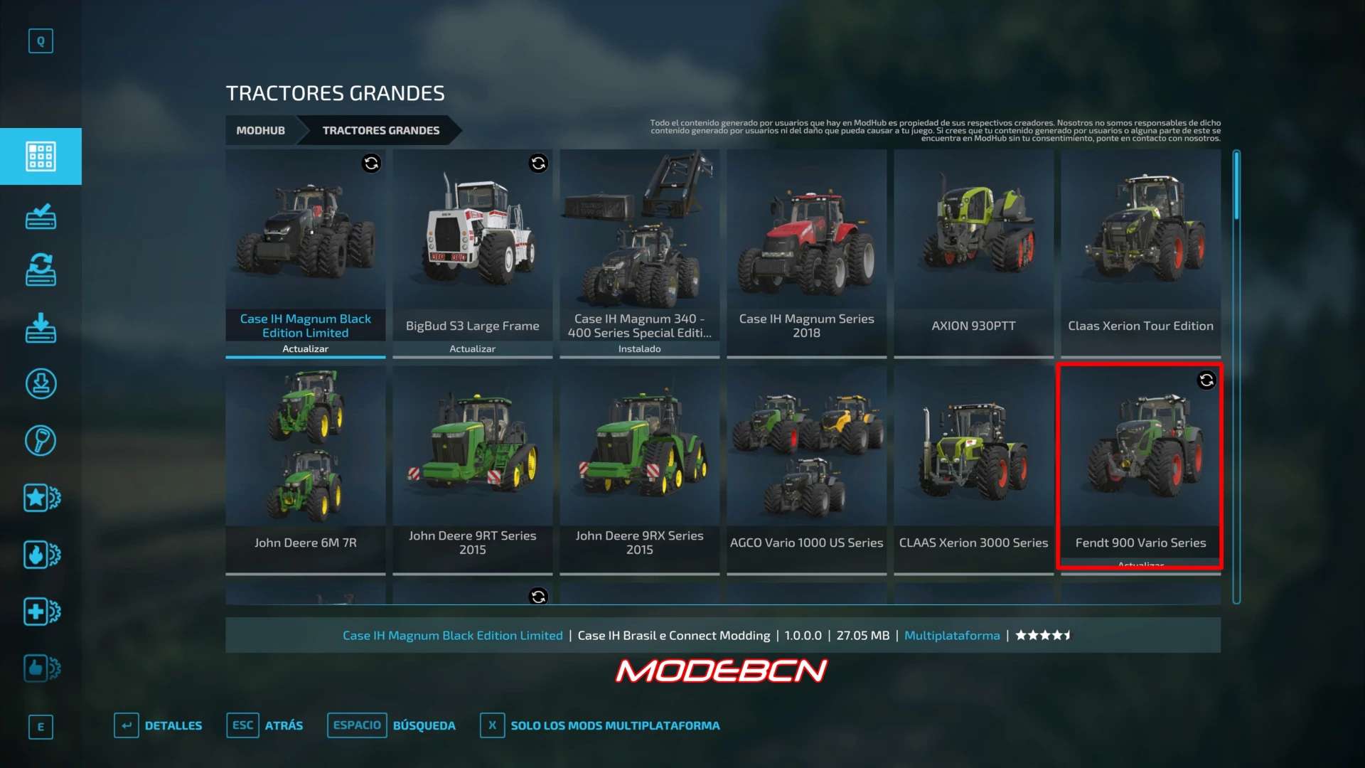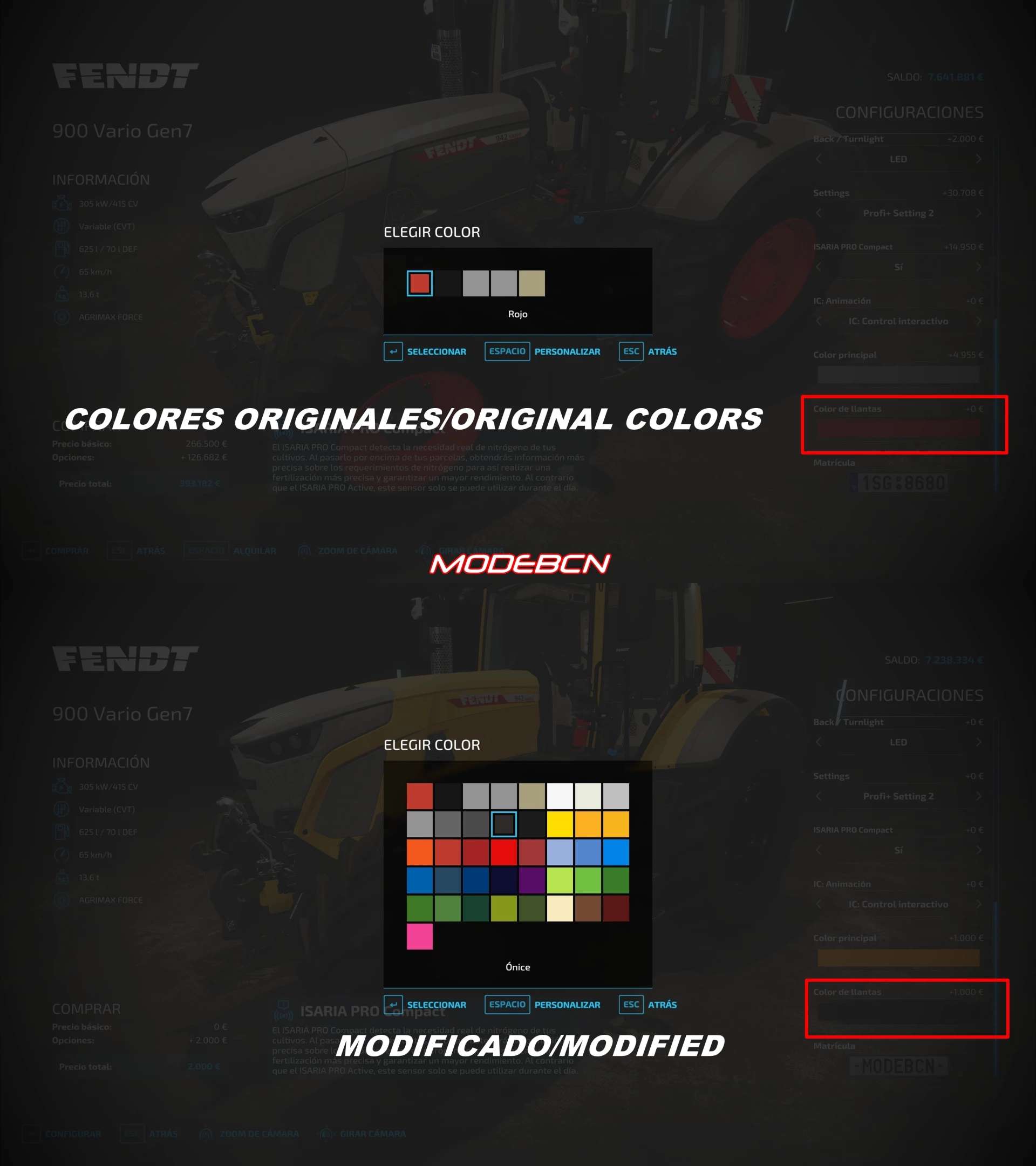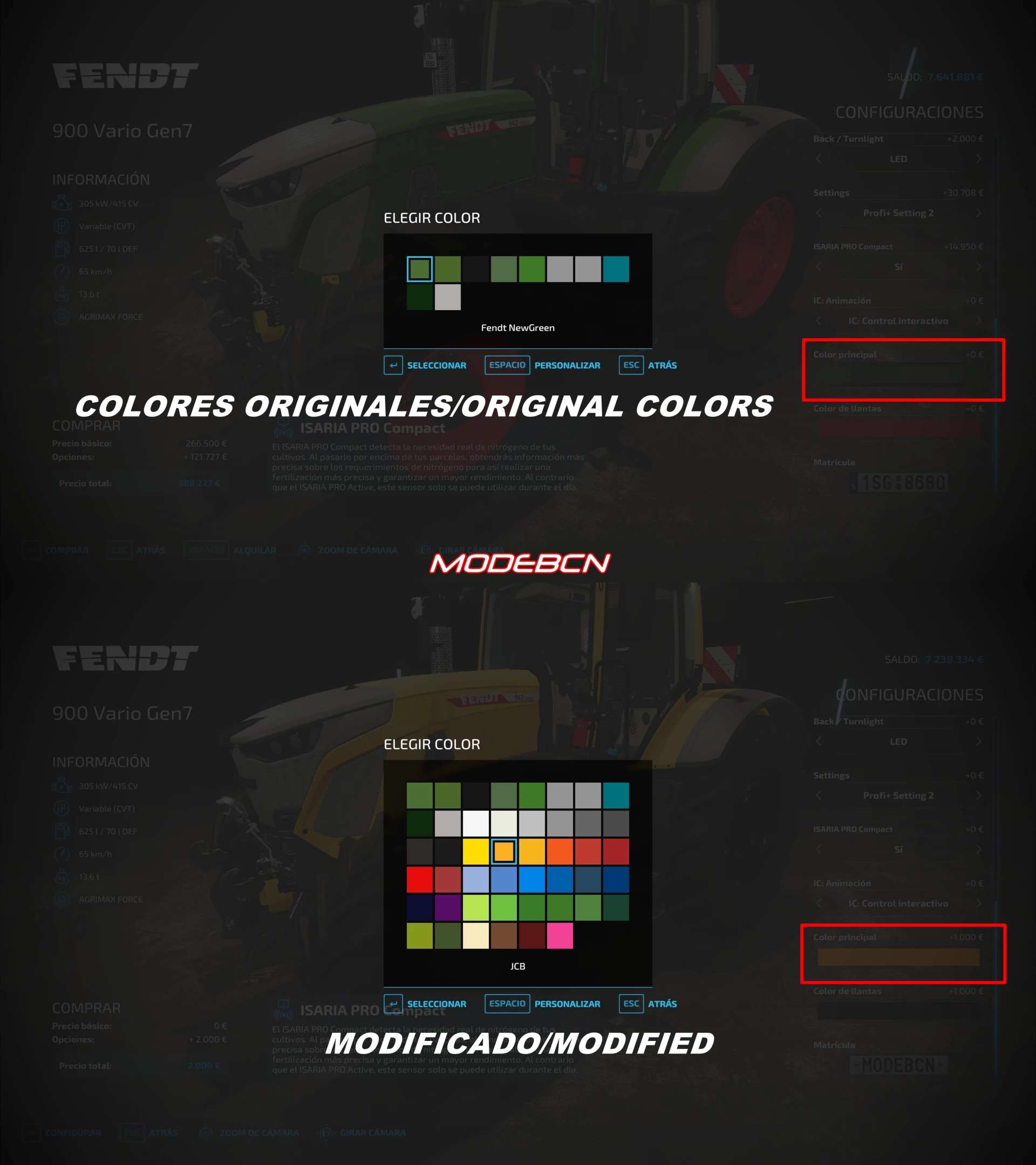1. Download the FS22_FendtVario_900Gen7 mod to install the color mod, + Spanish translation you can do it in-game (downloadable content/Large Tractors)