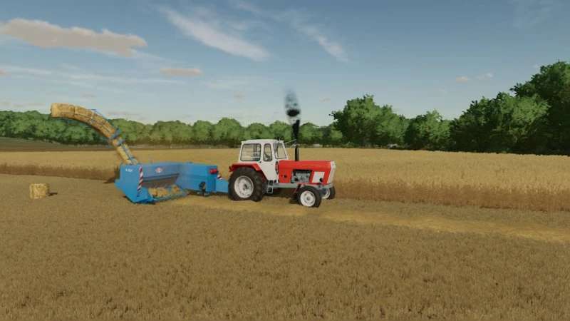 The binding process is carried out according to the Deering knot system. Then the finished bale is pushed through the baling ram to the chute.