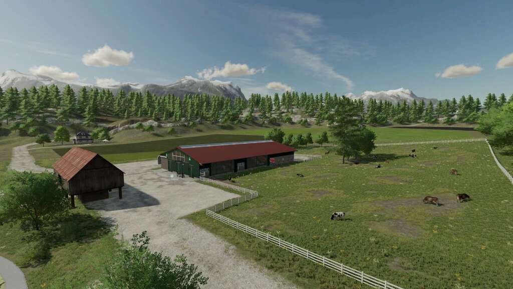 – In new player mode, you get a pre-built farm with cow barn, sheep barn, chicken barn and machines.