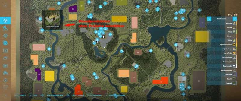 Other crops: carrots, onions, lavender, alfalfa, rye, red cabbage, white cabbage, poppy seeds, Hops and clover. The map includes self-created storage options that you can choose from the tree menu under silos can be found. Here you can store: carrots, onions, potatoes, Sugar beets, sugar beet pulp, red cabbage, white cabbage, sugar cane, hops, chaff, Grass, hay, straw, silage, compost, forage, manure, pig feed, wood chips and Mixed feed. There are 4 warehouses available and cost per warehouse 22450 € Daily cost are at 17 €. All MC Mapping objects are saleable. However, camps should be previously be cleared.In the game’s own fruit silos you can store: wheat, barley, oats, Rape, sunflower, soybeans, corn, sorghum, lavender, poppy, rye and malt.