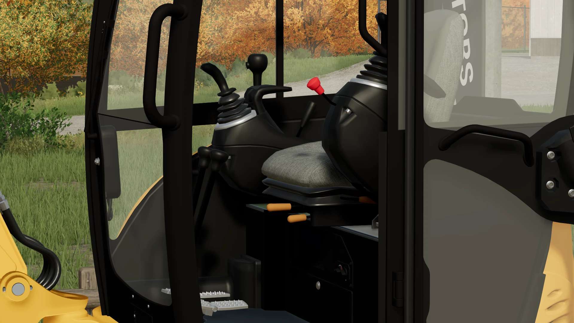 Pedals, levers, joysticks, doors and windows are animated. Three buckets included.