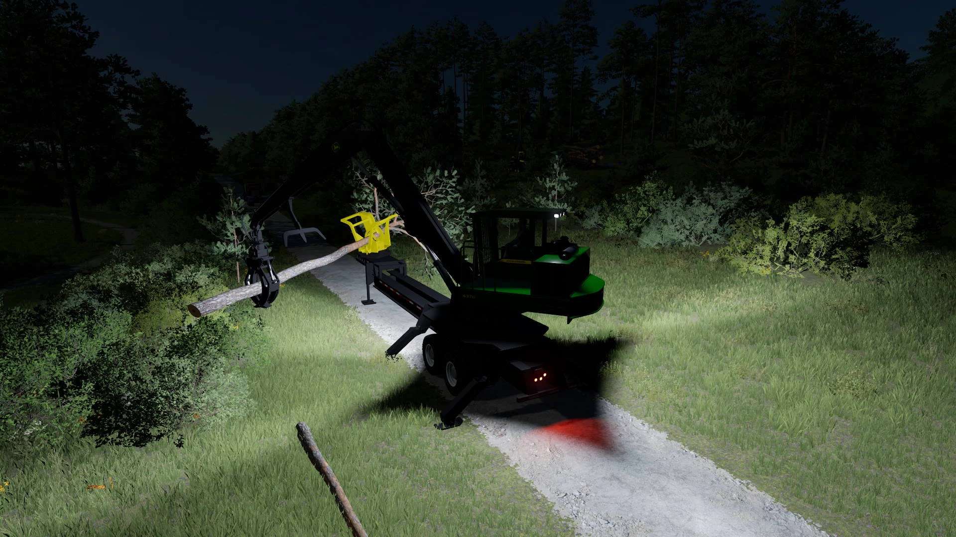 – Just grab bottom of tree to your claws and put it into the delimber. Then close delimber’s claws and run the tree throw delimber by moving/rotating your arm.