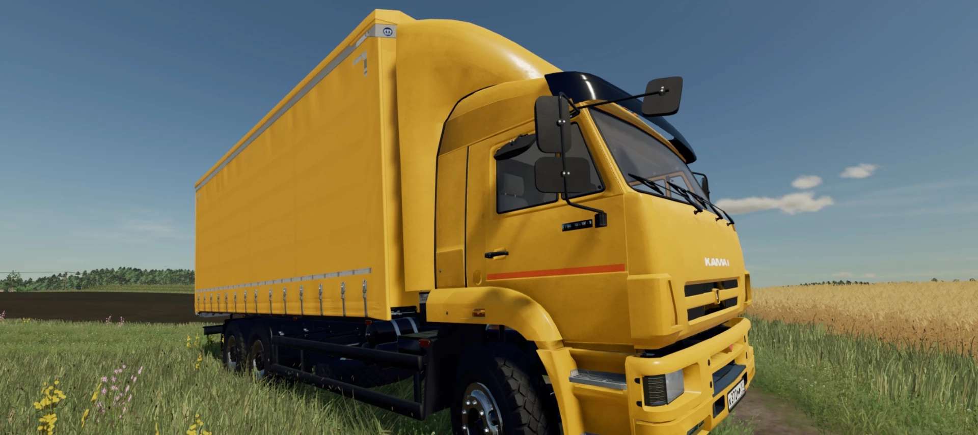 The mod includes the KAMA3 6460 truck for transporting medium and heavy semi-trailers
