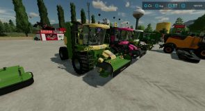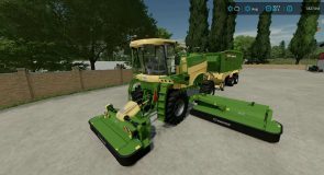Mods Included: Krone BigM450 with re-brand skins for fictional John Deere and Claas, colour options, selectable front dual and floatation tyres, extra lighting and rear camera. Fendt and Lely branding for the Tigo XR75D with colour and top cover selection converted and updated for FS22.