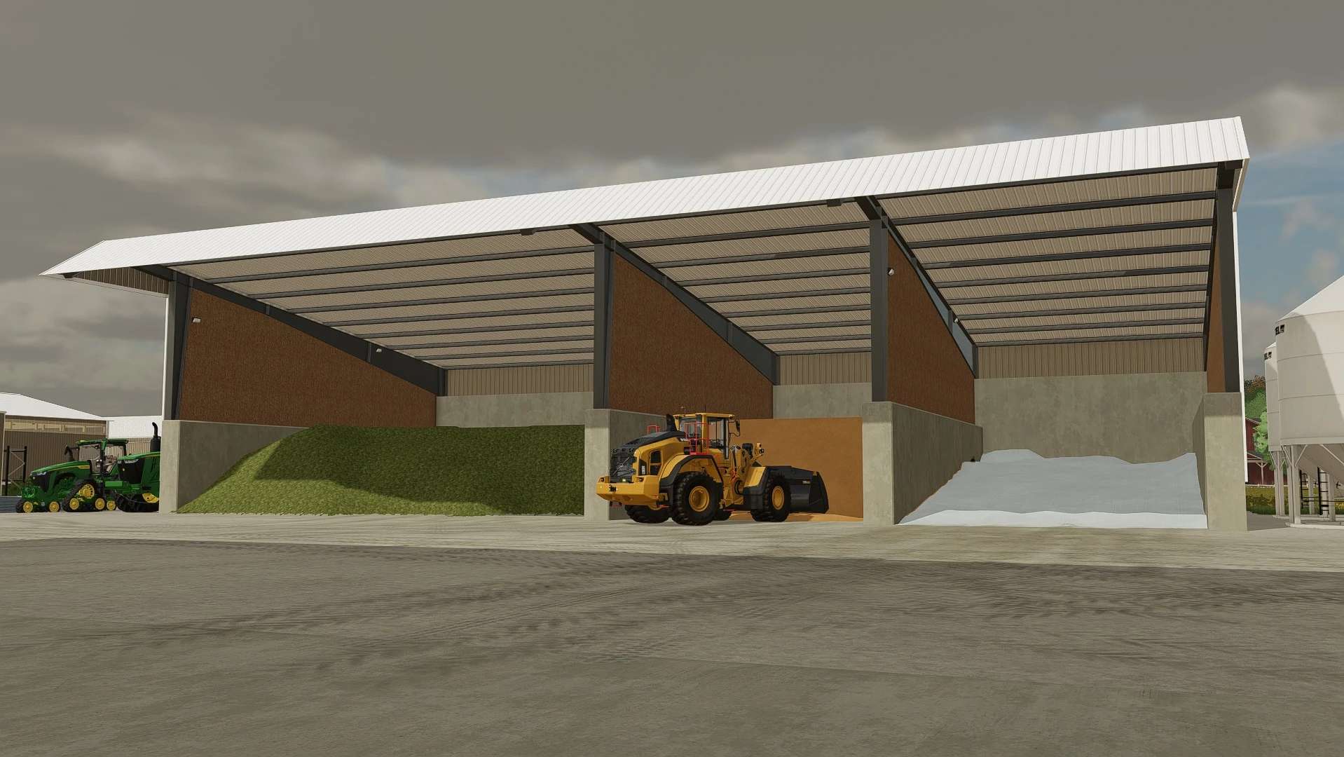 Pack includes 4 sheds in a double, triple, quadruple and triple with double wide configurations with roof heights to support dump trailers. The right most bunk on all 4 sheds can be packed and blanketed for silage. This mod pack works with ThundR’s Farming Simulator Mods Placeable Colors mod to make more than one mesh color selectable! A Link for Placeable Colors provided below.