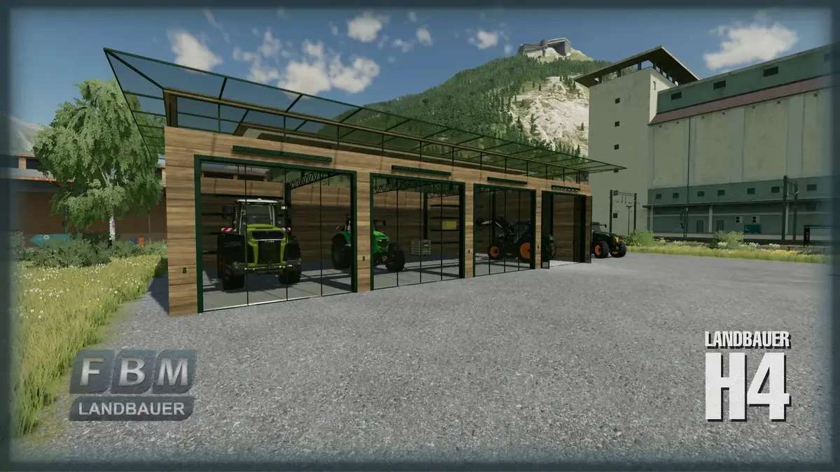 The Landbauer H4 is a modern agricultural machine hall. A metal frame with wooden walls and a glass roof crown form this modern storage option especially for large tractors. The building is completely self-sufficient due to its own solar system on the roof and belongs to the MOD series “Modern Architecture in Agriculture”.