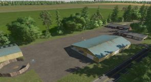 Break out your big equipment. 18 large fields. 11 sell points and 12 production chains offer many options. There is a water refill at your starting farm pond. A very large, central farm to house all the big equipment you will need, plus all of your animal husbandries. Default seasonal growth and soil map.