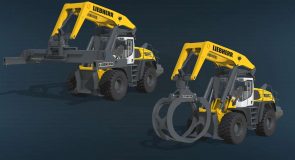 This machine can be used for loading / unloading wood logs and handling shipping containers.