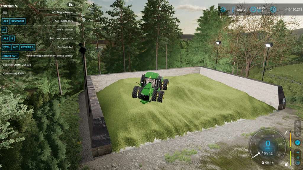 This is a large bunker silo for turning your chaff, grass and dry grass into silage. With the four bright lights built onto the silo walls you can work the silo 24hrs a day if you need too. The silo will hold around 1.2 million liters of chaff. The base price is $89,995 and the daily upkeep is $11.00