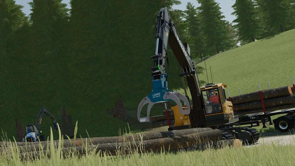 This log grapple can be used with the Volvo EC250DL and EC380DL excavators included in the Platinum Expansion DLC.