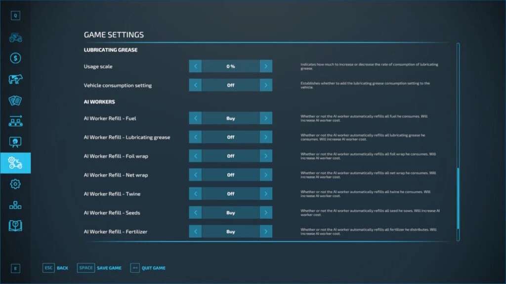 – added game settings for activation of the consumes and for usage scale of the lubricating grease