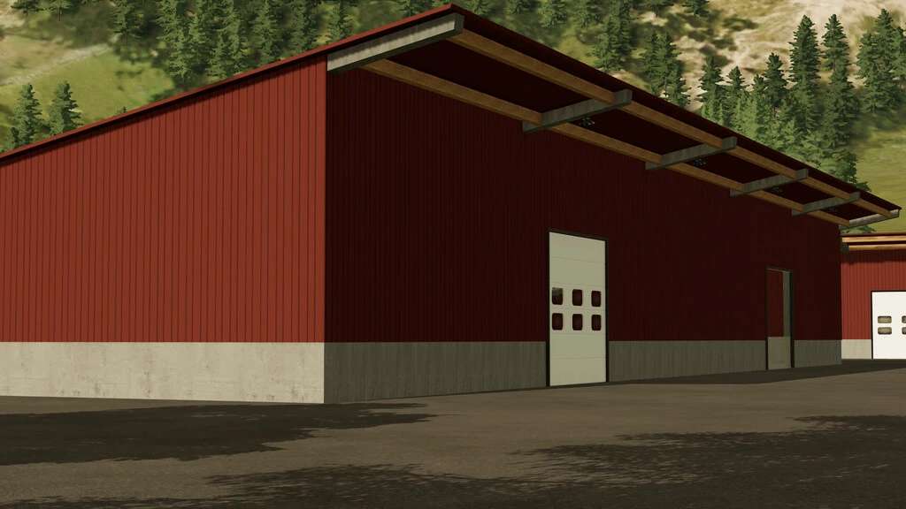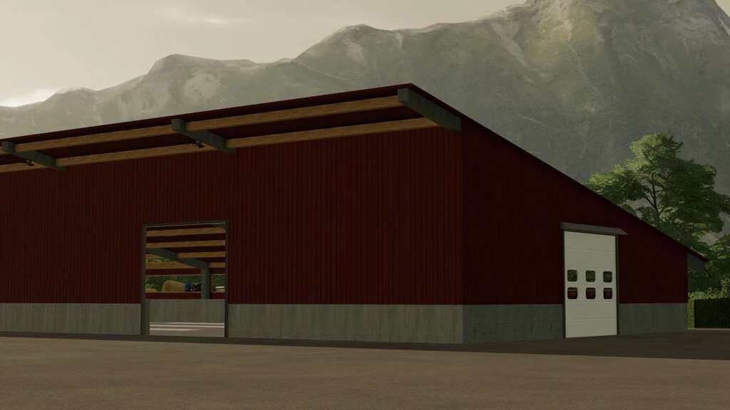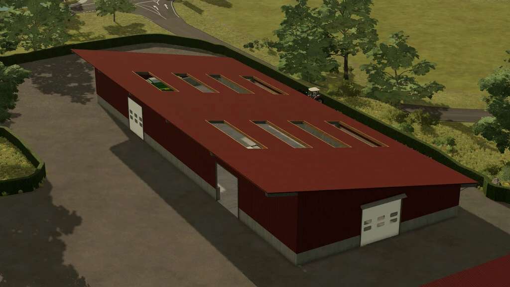 The mod includes a North German-style warehouse with three large sector gates.