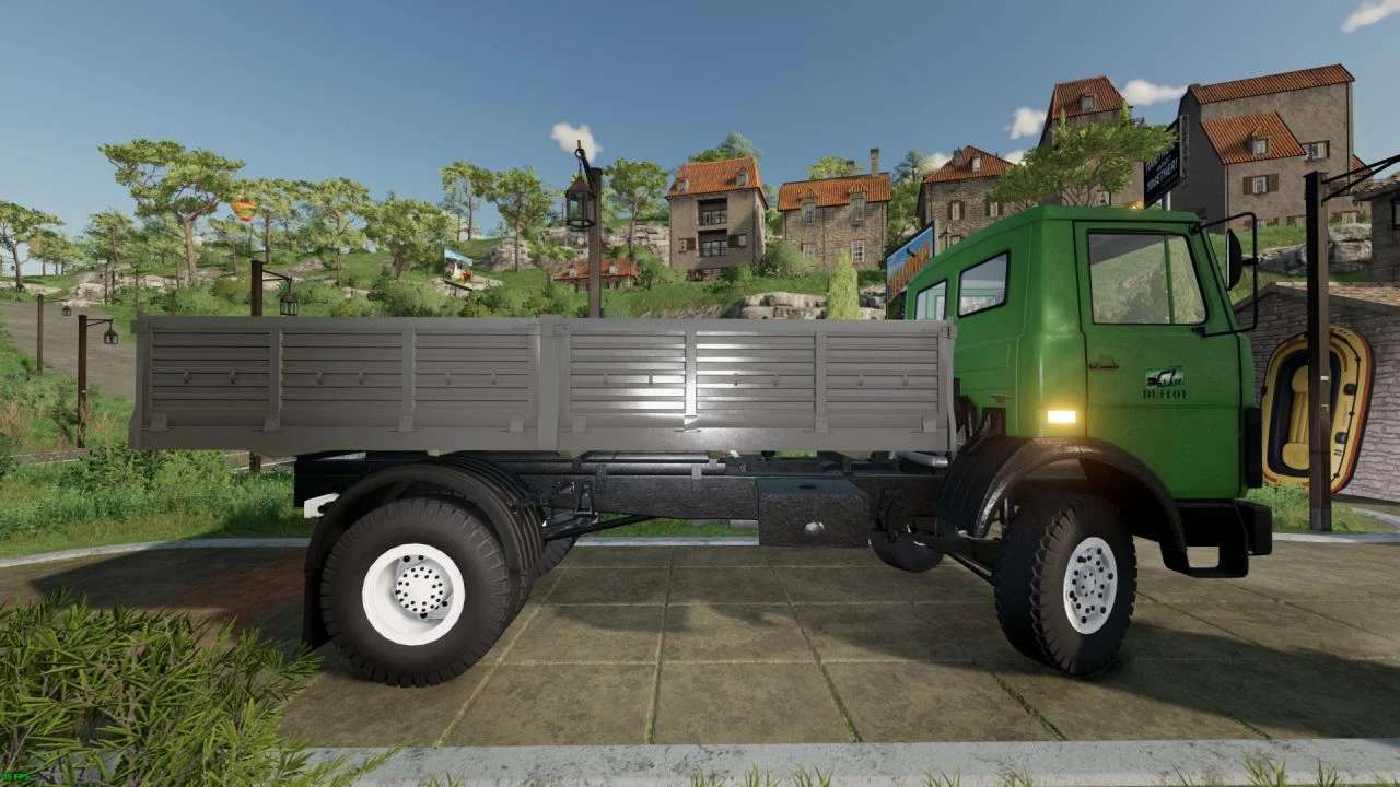 For this eighth mod, I offer you this Mercedes Benz 817 (mounted on an original MAZ chassis) for FS22: