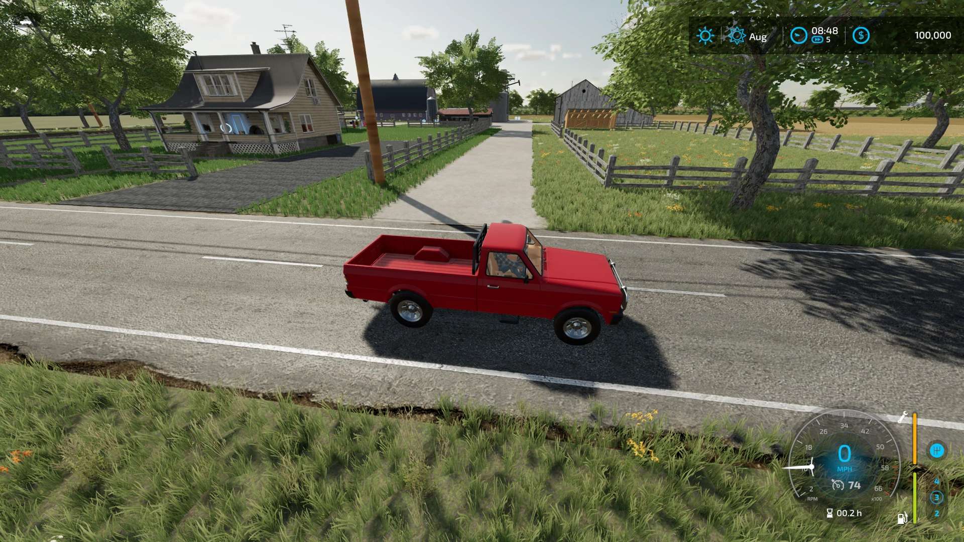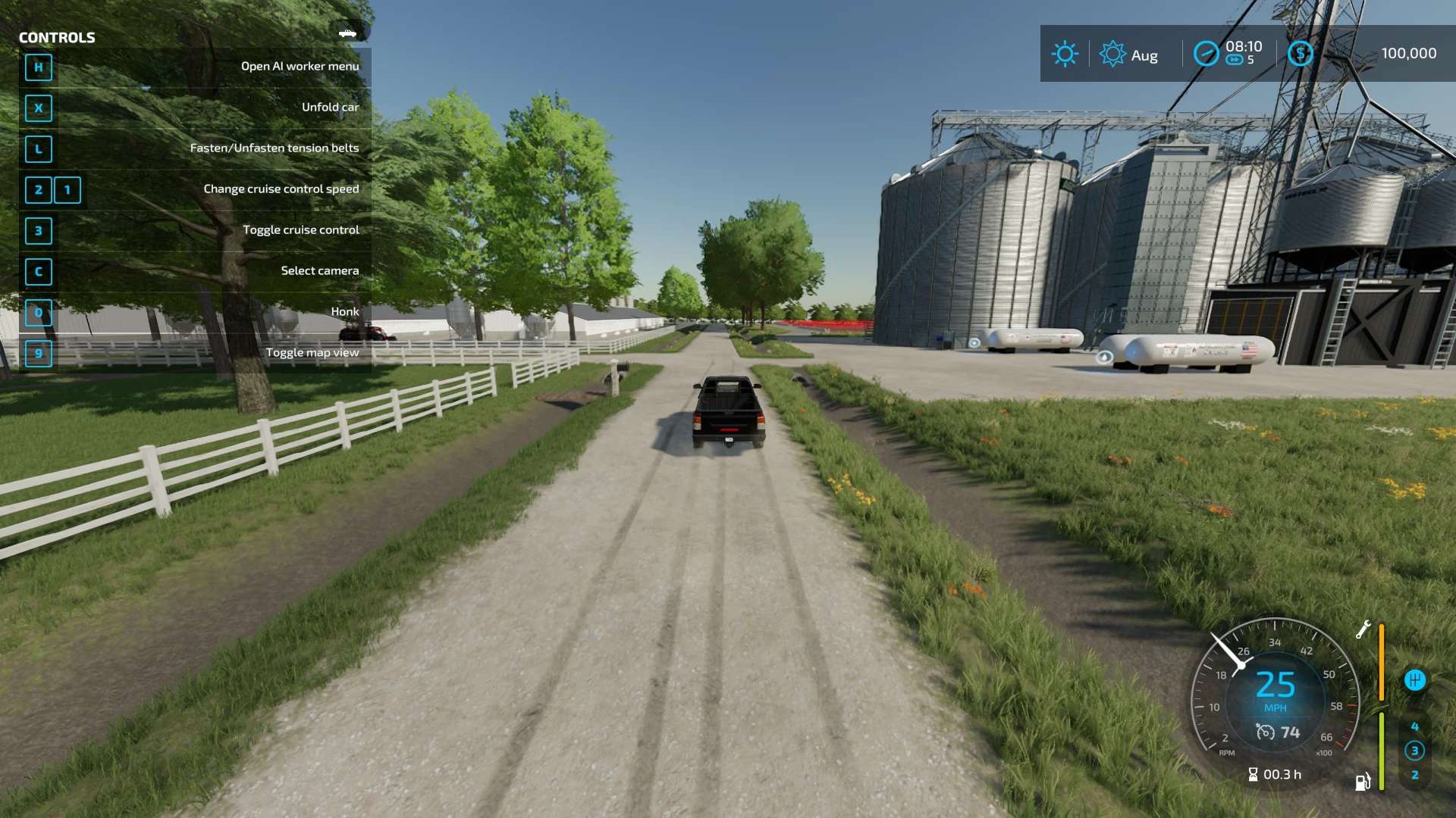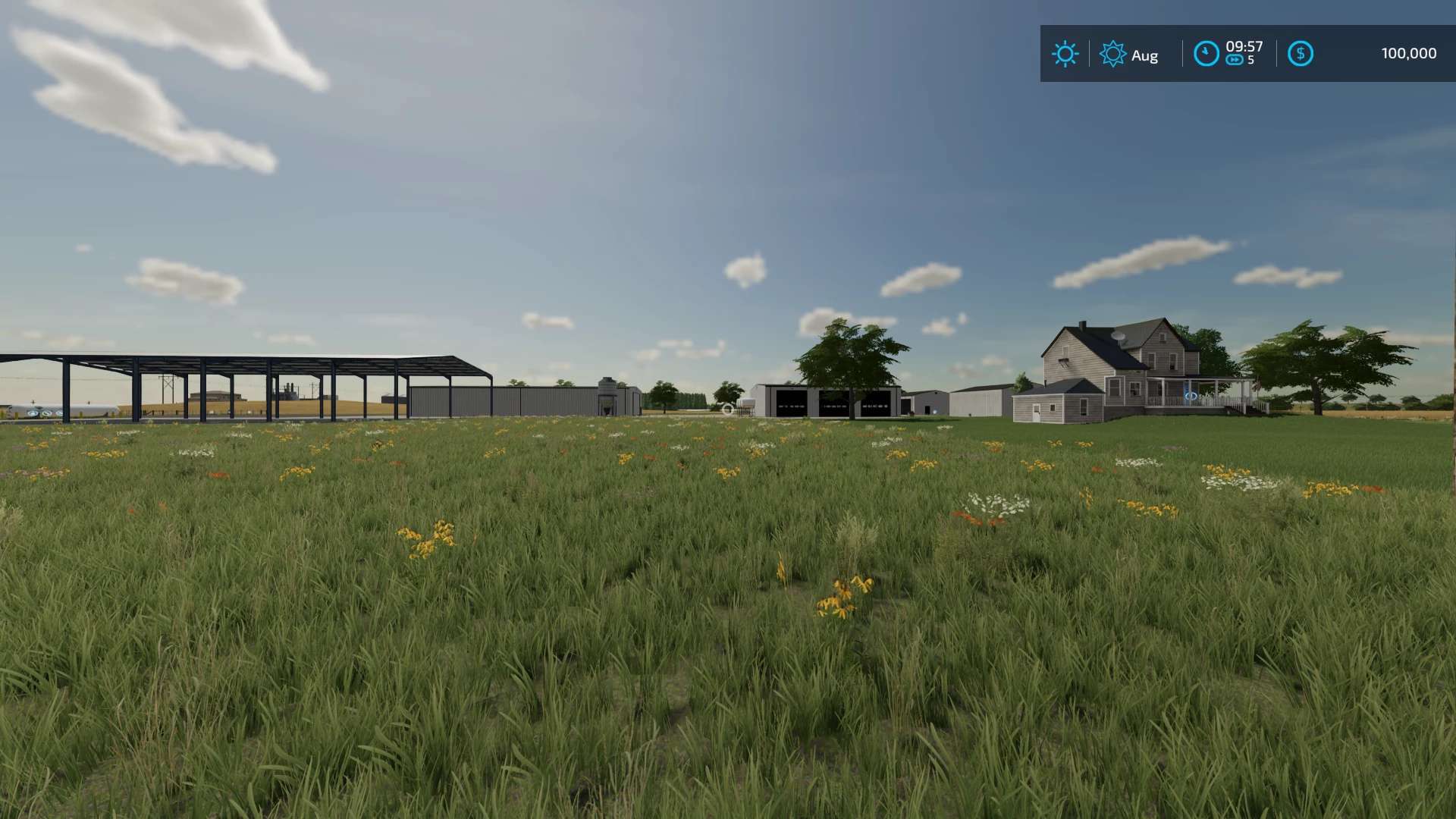 When you start on the map, is a small farm in the Southwest. The farm sets just south of the farm, you can see it in the distance. As you go along farming you can buy more land and saving your money you can purchase one of the higher-value farms. They are 5 farms, each set up differently. In the north direction from where you are, a farm that has feed lots and a production silo, corn dryer. Most of the trees are in the far north and far south. The sawmill in the far south and far north.
