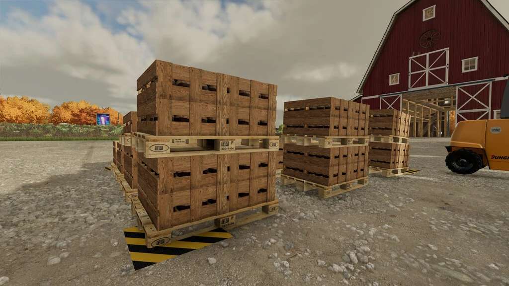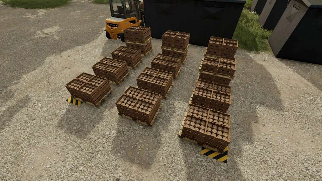 There are basically 3 different dimension options and each has an option to spawn pallets either in one layer or in 2 layers (2 pallets gets to spawn on each other, so you can carry and load 2 pallets at a time without stacking them by yourself, making the loading a bit faster and more comfortable. And also more pallets can be spawned on smaller place.)