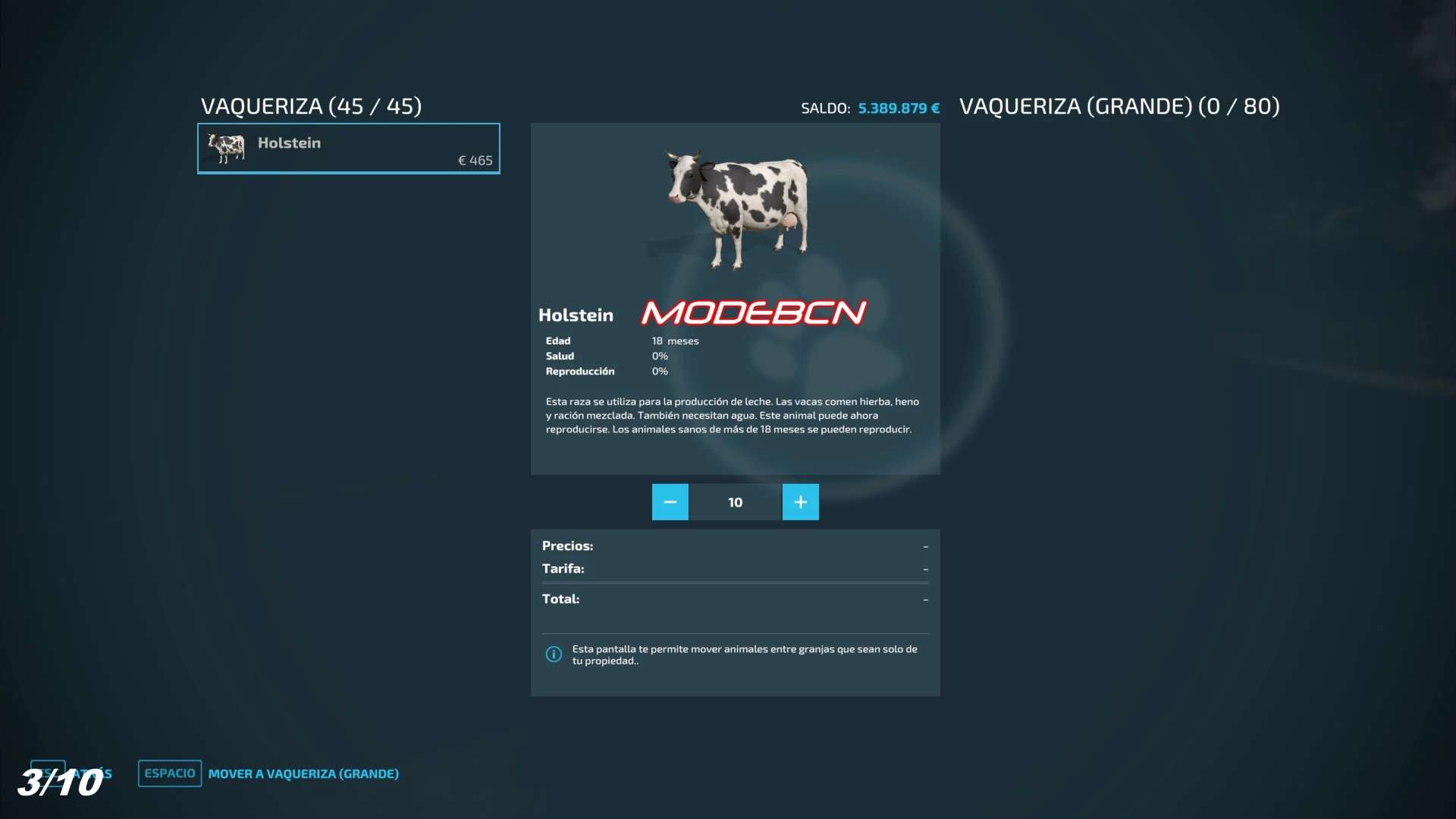 Move Husbandry Animals SPANISH VERSION V1.0.0.0