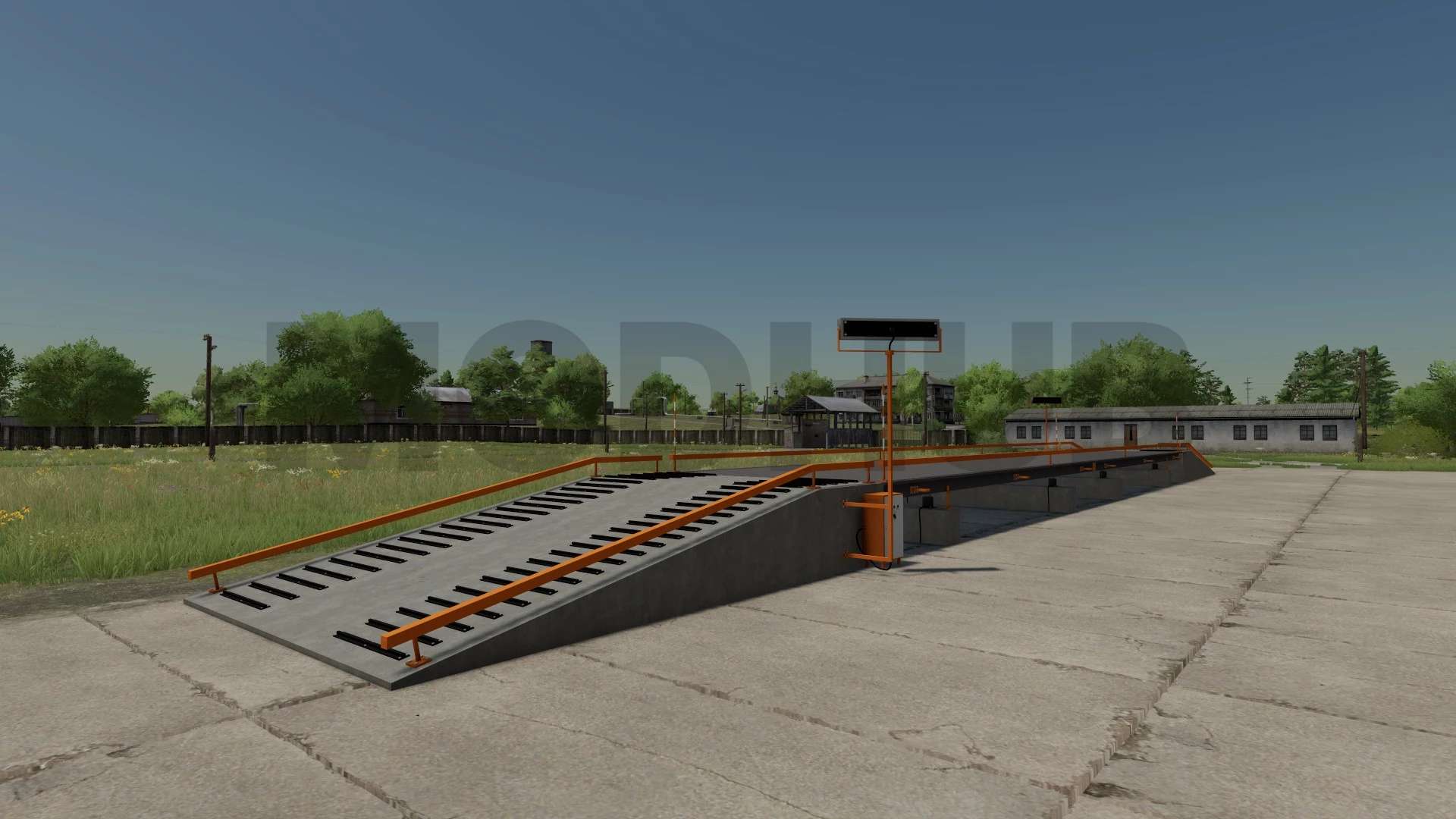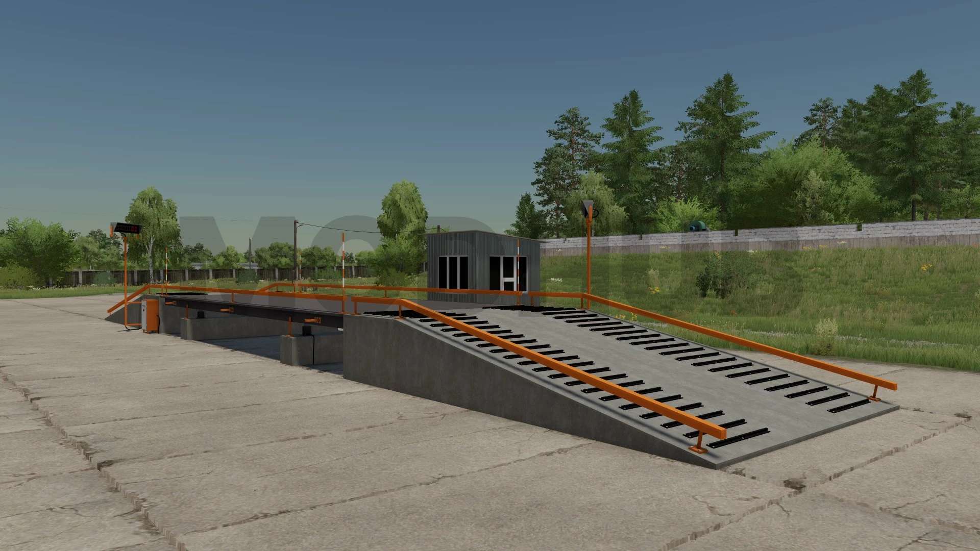 A pack of purchased, placed weighing stations with a long platform of 10 and 20 meters, with and without an office, with and without a canopy, with an office and a canopy.