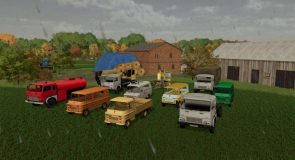 Pack of 10 placeable old vehicles for decorating your farm.