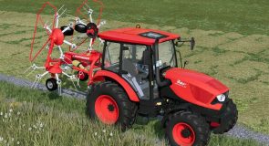 The Pöttinger HIT 47 N is a 4 rotor tedder with 6 arms and hydraulic lifting and turning for the outer rotors for a secure and space saving transportation.